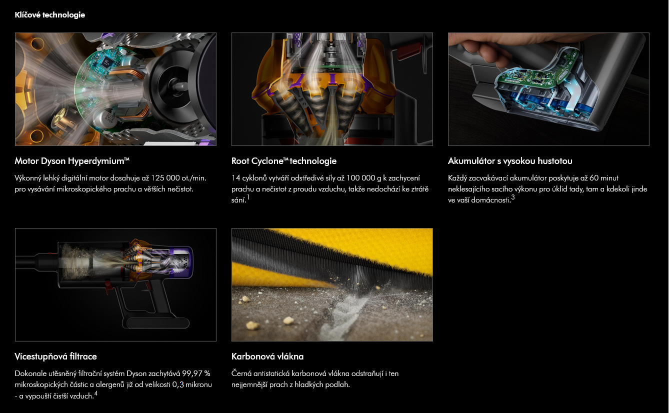 - Výkonný inteligentní akumulátorový vysavač Dyson