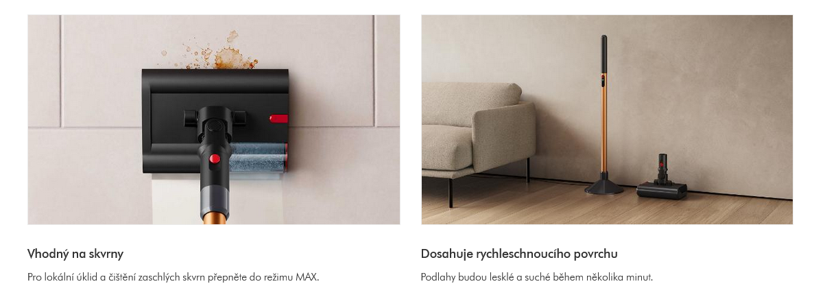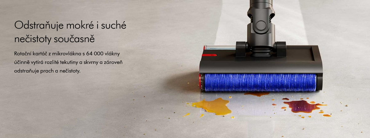 Absorpční rotační kartáč účinně vytírá rozlité tekutiny a skvrny a zároveň odstraňuje prach a nečistoty.