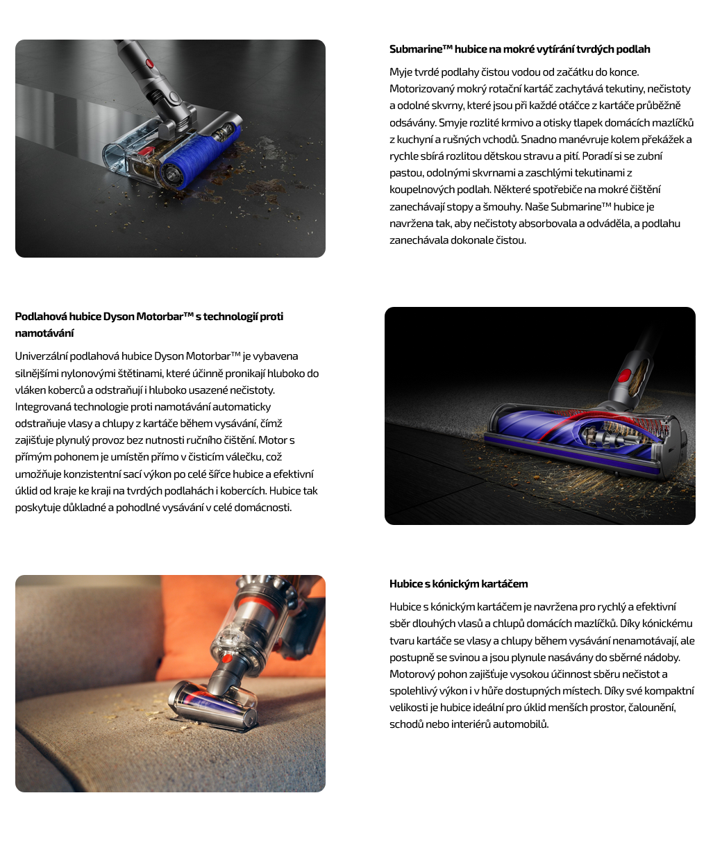 - Podlahová hubice Dyson Motorbar™ s technologií proti namotávání