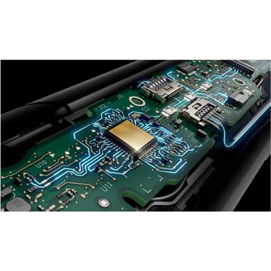 Třinácti lopatková turbína se otáčí rychlostí až 106 000 otáček za minutu čím generuje vzduchový proud 11,9 litru za sekundu. To vytváří tlak vzduchu až 3,6 kPa, který je dostatečně silný na to, aby narovnával vlasy při jejich sušení. - Inteligentní regulace teploty