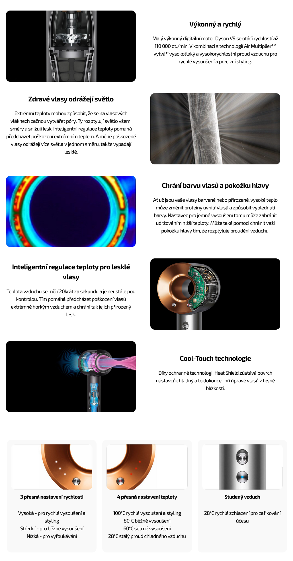 Rychlé vysoušení. Bez extrémních teplot. Navržený pro různé typy vlasů.
