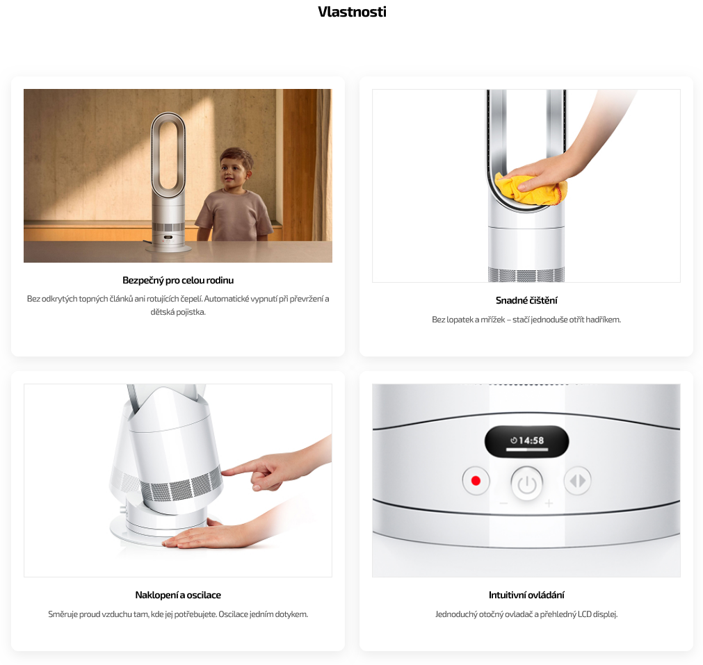 V kombinaci s technologií Air Multiplier™ zajišťují o 20 % rychlejší vytopení celé místnosti. - Silný proud vzduchu vás v létě rychle osvěží