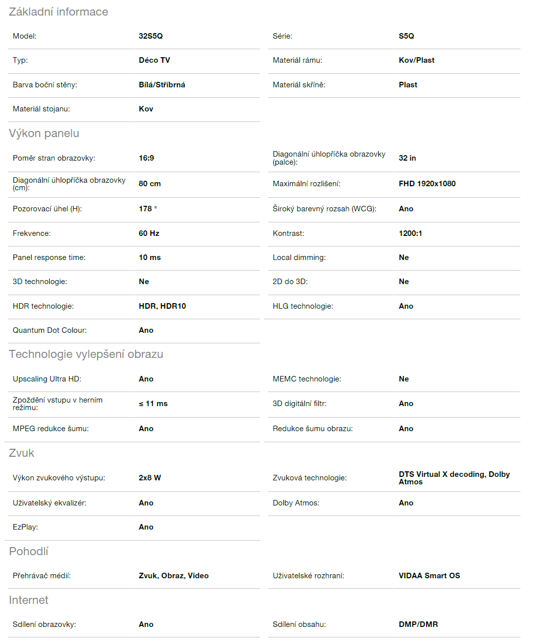 Smart QLED televizor, 80cm, FHD 1920x1080, DVB-T2/T/C/S2/S, energie E, Wifi, Aplikace, systém VIDAA Smart