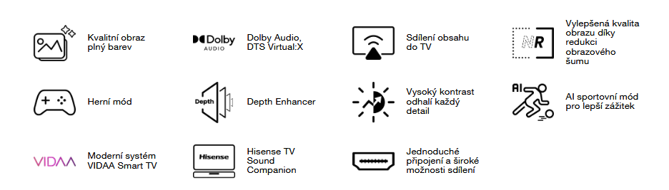 Ať už budete sledovat hudební pořady, sport nebo filmy, kvalita zvuku vás překvapí. Chytrá TV Hisense A4Q podporuje DTS Virtual: X i Dolby Audio. Čistota zvuku, kvalita dialogů i realistické efekty tak budou naprostou samozřejmostí.