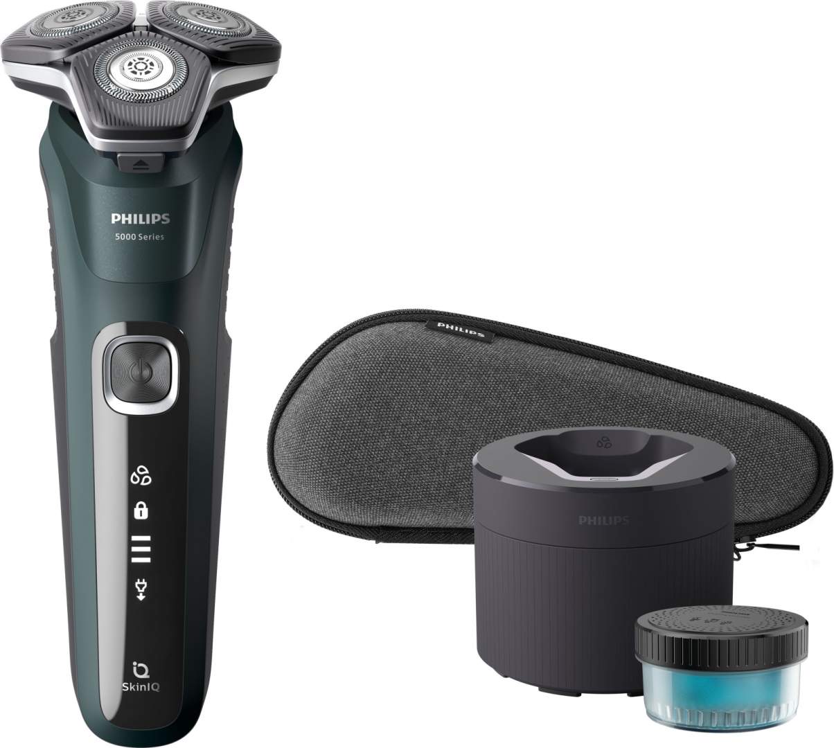 Elektrický holicí strojek pro mokré a suché holení, bezdrátová čisticí stanice, 60min provozu, nabíjení 1h, výklopný zastřihovač,