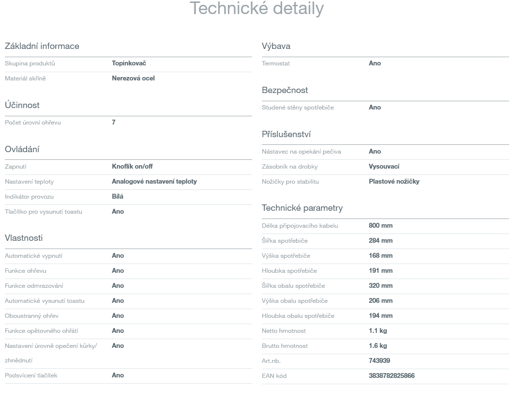 Topinkovač, Analogové nastavení teploty, Automatické vypnutí, Nerezová ocel