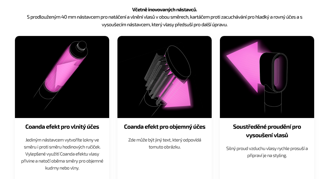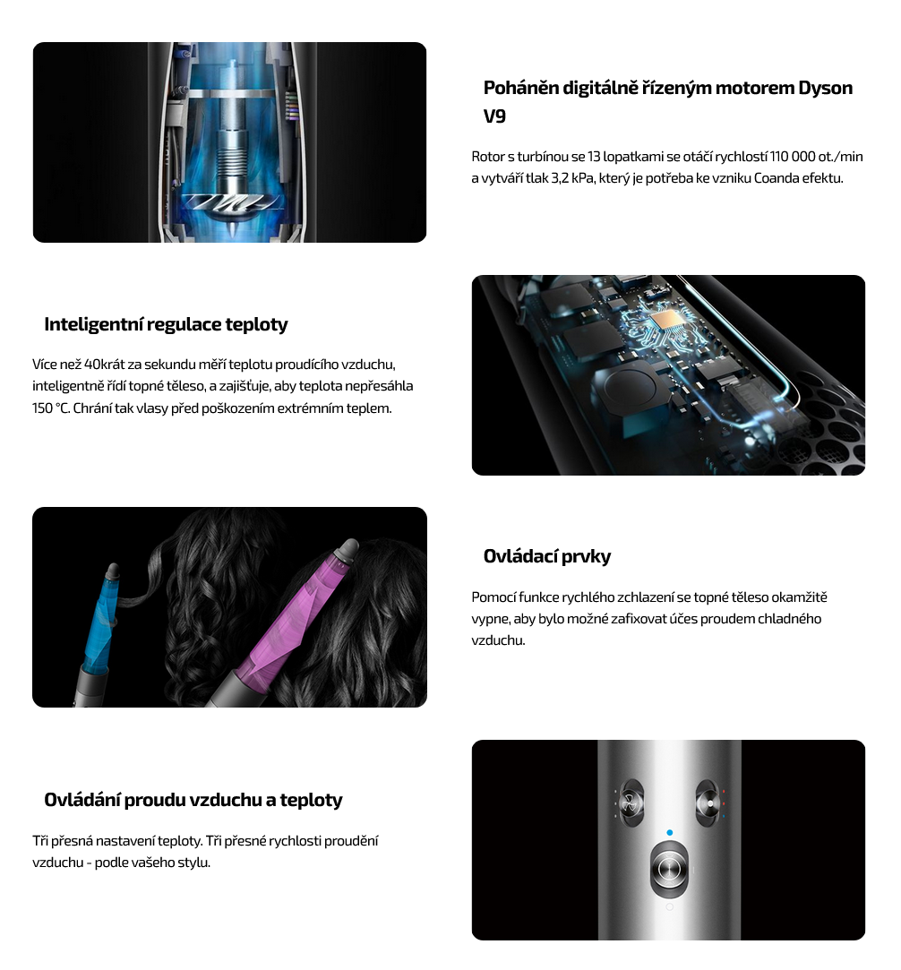 Jediným nástavcem vytvoříte lokny ve směru i proti směru hodinových ručiček. Vylepšené využití Coanda efektu vlasy přivine a natočí oběma směry pro objemné kudrny nebo vlny. - Coanda efekt pro objemný účes