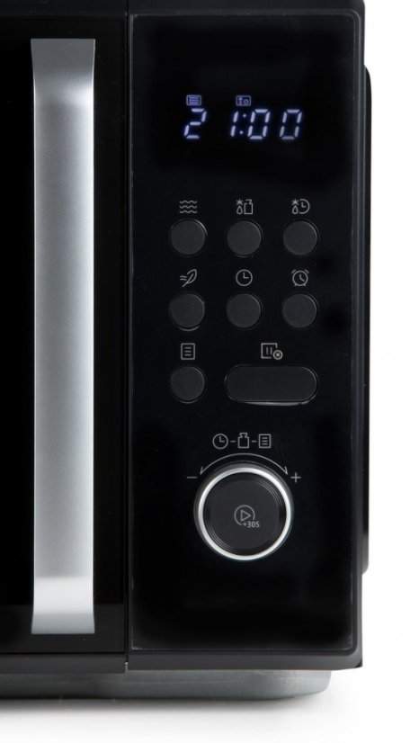 Mikrovlnná trouba kompaktních rozměrů vás překvapí svým velkým vnitřním prostorem s otočným talířem o průměru 31,5 cm. Digitální ovládání usnadňují přehledná tlačítka pro rychlou volbu všech důležitých funkcí, otočný ovladač a velmi dobře čitelný LED displej s bílým podsvícením. Vhod přijde také tlačítko rychlého spuštění ohřevu, nebo speciální funkce samočištění, který mikrovlnnou troubu důkladně vyvětrá. Zajímavá a velmi užitečná pak může pro vás být také možnost nastavit v řadě za sebou dva různé ohřevy s různým nastavením výkonu a času.