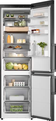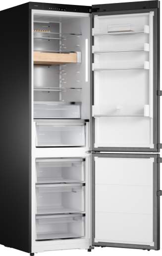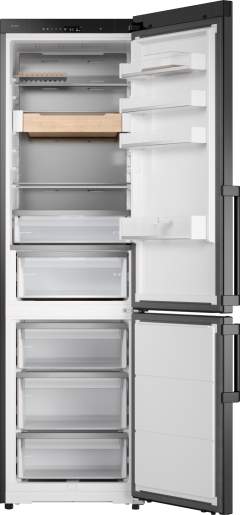 Chladnička s mrazákem dole, výška 203cm, chlad.200l/mr.130l, energie B, NoFrost, Zásuvky Dura Fresh, Černá nerezová ocel