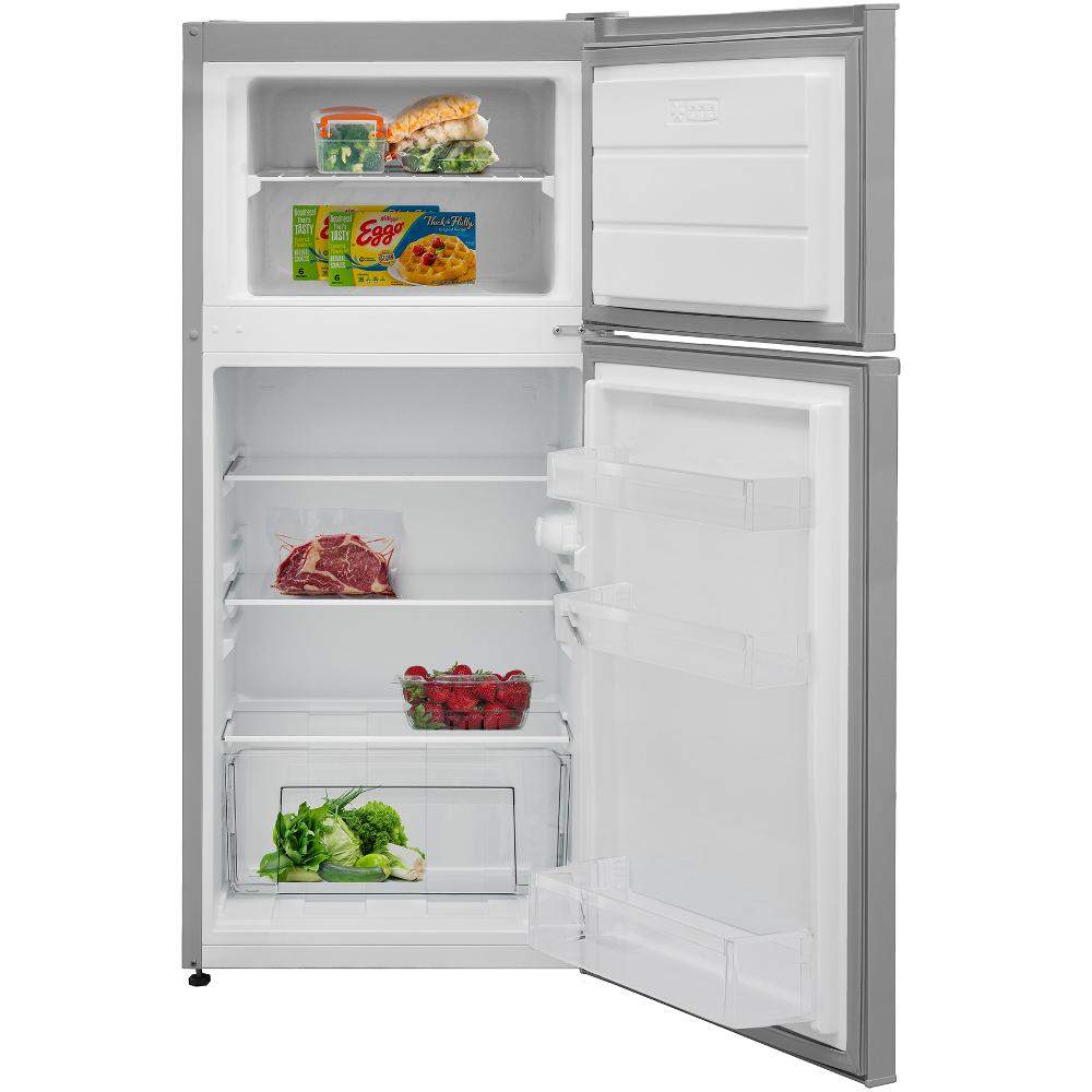 Chladnička s mrazákem nahoře, výška 123cm, chlad.126l/mr.42l, energie E, 40dB, INOX provedení