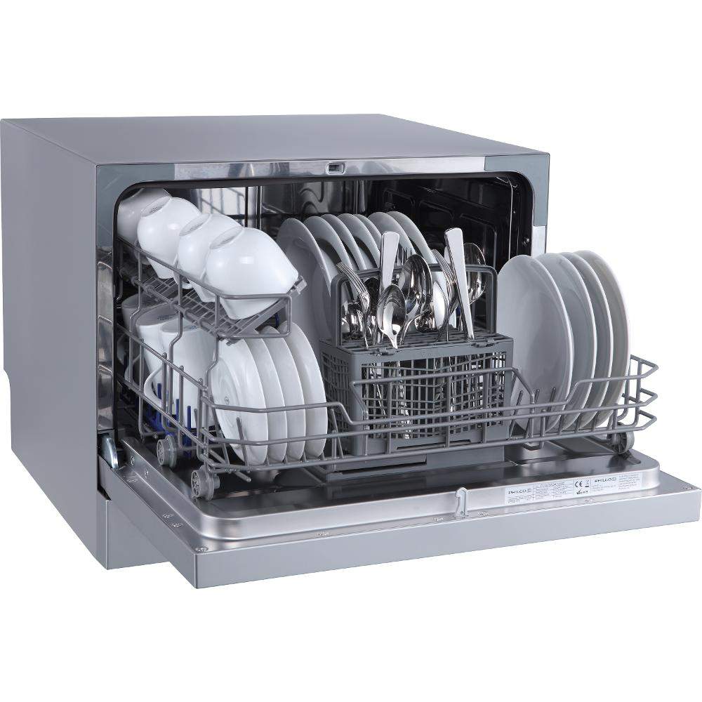 Stolní myčka nádobí, 6sad nádobí, 7programů, energie F, hlučnost 49dB, nerez