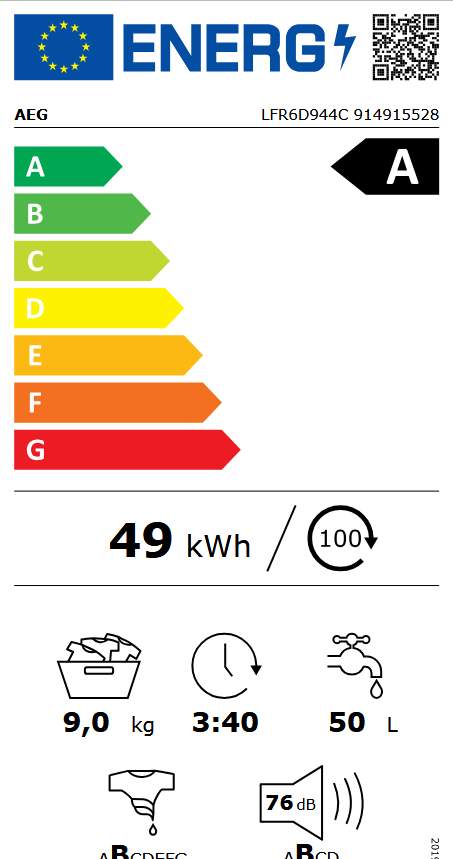 - Spotřeba vody v litrech na cyklus, na základě programu eco 40-60. Skutečná spotřeba vody bude záviset na tom, jak je spotřebič používán, a na tvrdosti vody: 50