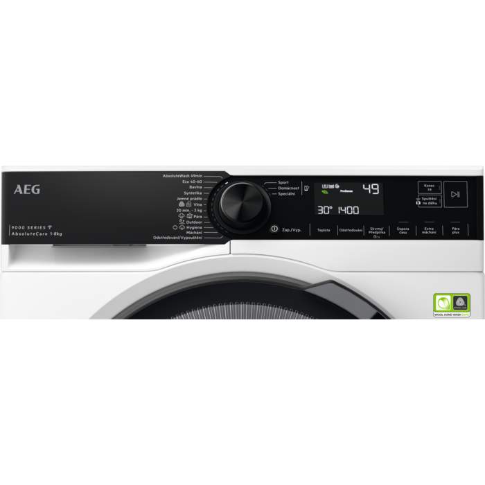 - Prací programy: 20 min. - 3 kg, AbsoluteWash 49min, bavlna , jemné prádlo, Eco 40-60, Hygiena, outdoor, máchání , odstřeď./vypouštění, pára, syntetika, vlna