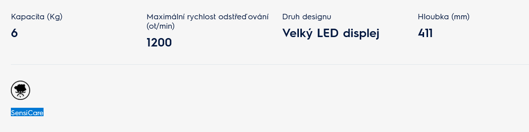 Úzká pračka, 6Kg, 1200ot/min., hloubka 41cm, energie B, SensiCare, Velký LED displej, panel v češtině