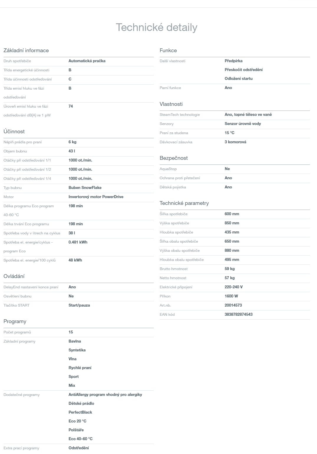Invertorový motor zajišťuje spolehlivý a tichý chod, šetří energii a prodlužuje životnost vašeho spotřebiče.