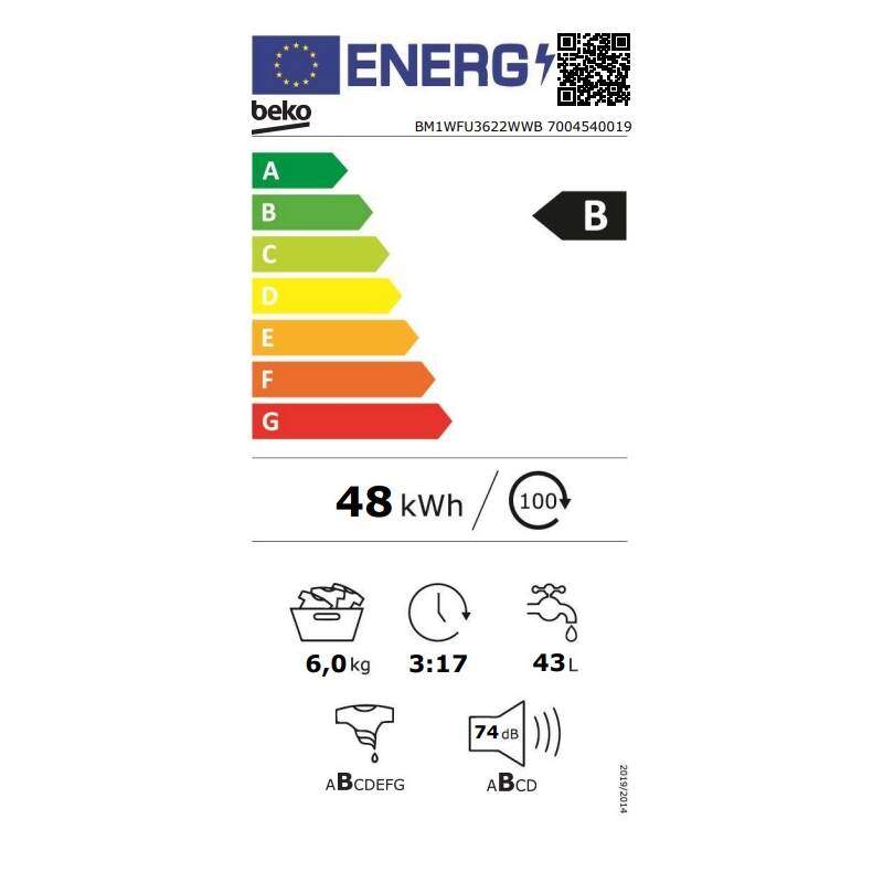 Pračka předem plněná, 6Kg, 1400ot/min., pára SteamCure, 15 programů, energie B, Digitální displej,