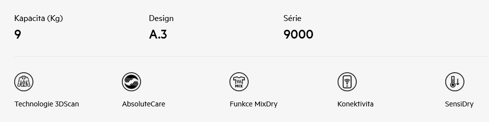 Sušička prádla - AbsoluteCare, 9Kg, Tepelné čerpadlo, AbsoluteCare, WiFi - Konektivita, SensiDry, Velký displej
