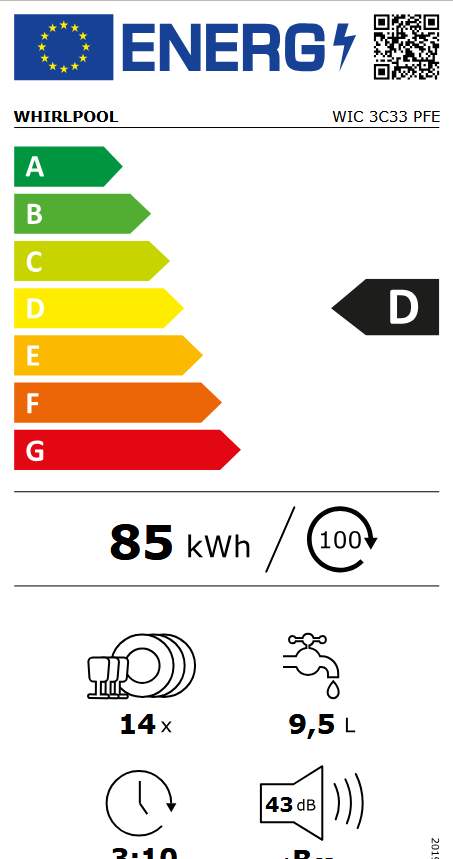 - Spotřeba energie na 100 cyklů Eco Program (EU 2017/1369): 85