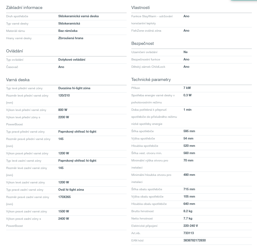 Vestavná deska - sklokeramika, 4 varné zóny, Dotykové ovládání, Zbroušená hrana